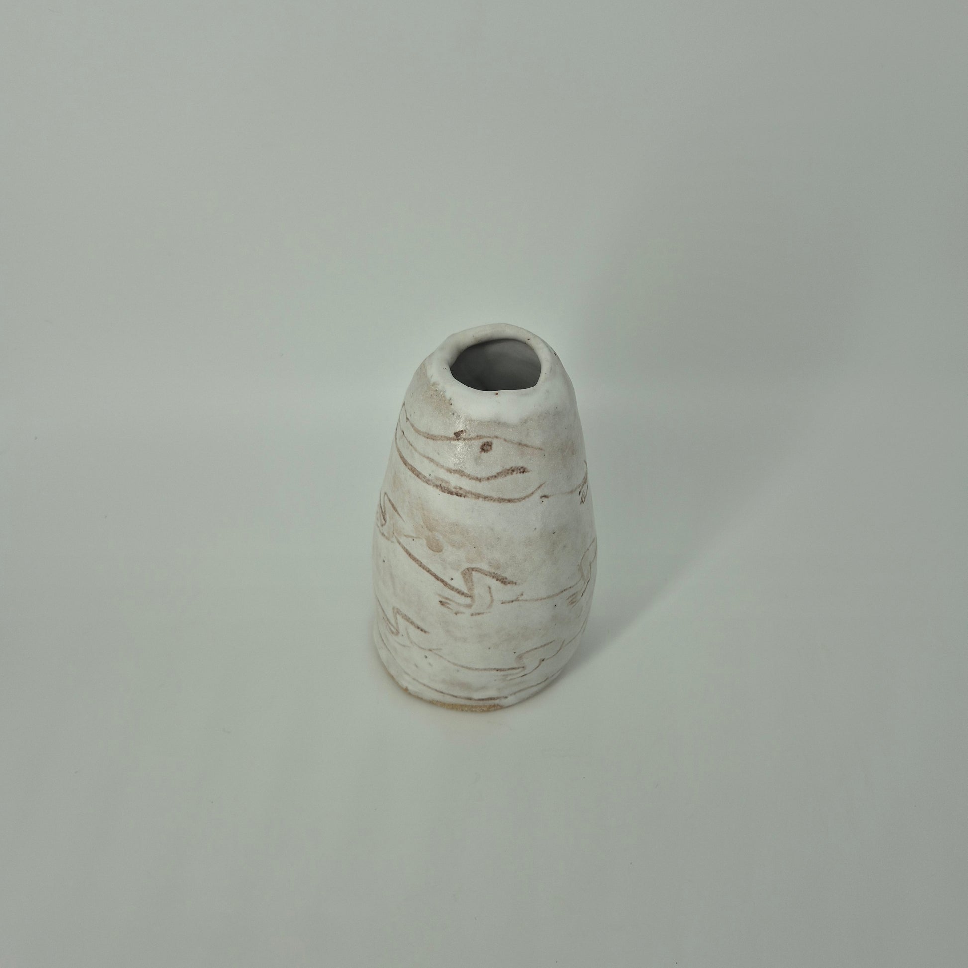 A subtle splash of Australiana over a handbuilt white raku body. This ceramic delight is handpainted with a near-endless crocodile.