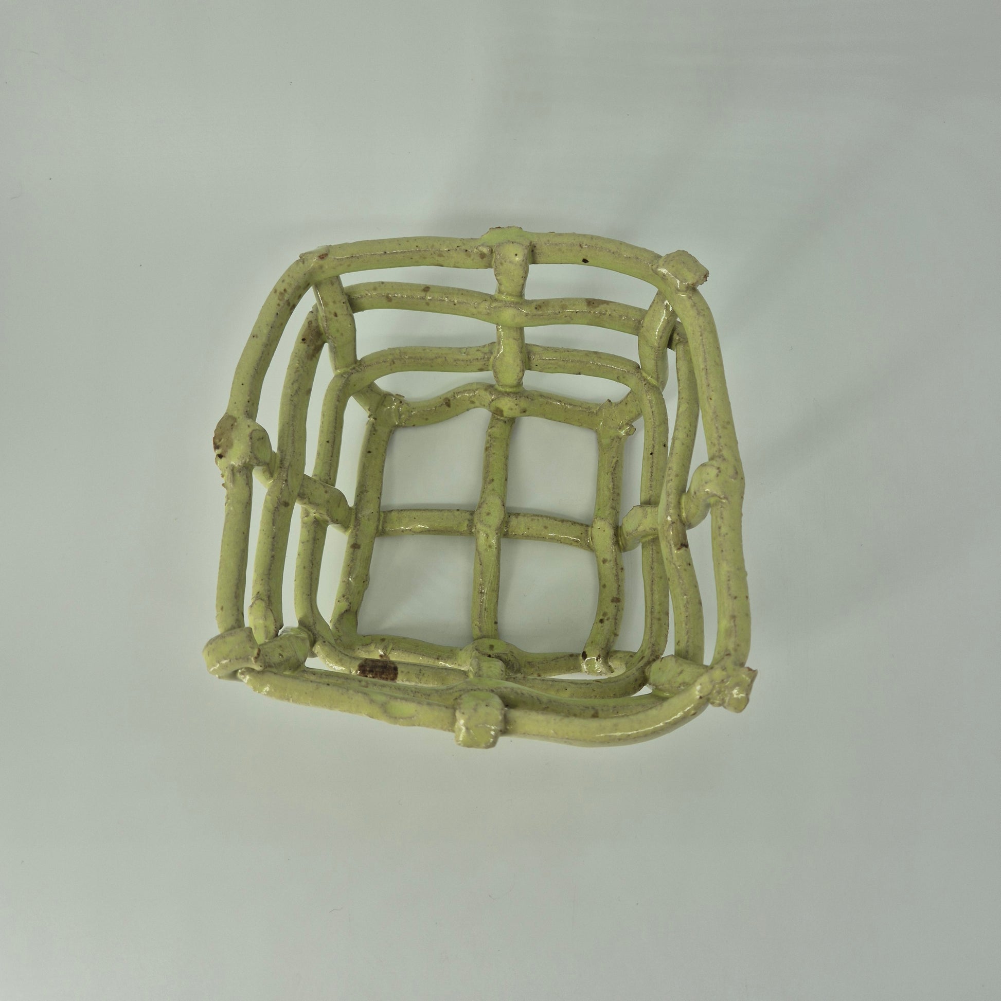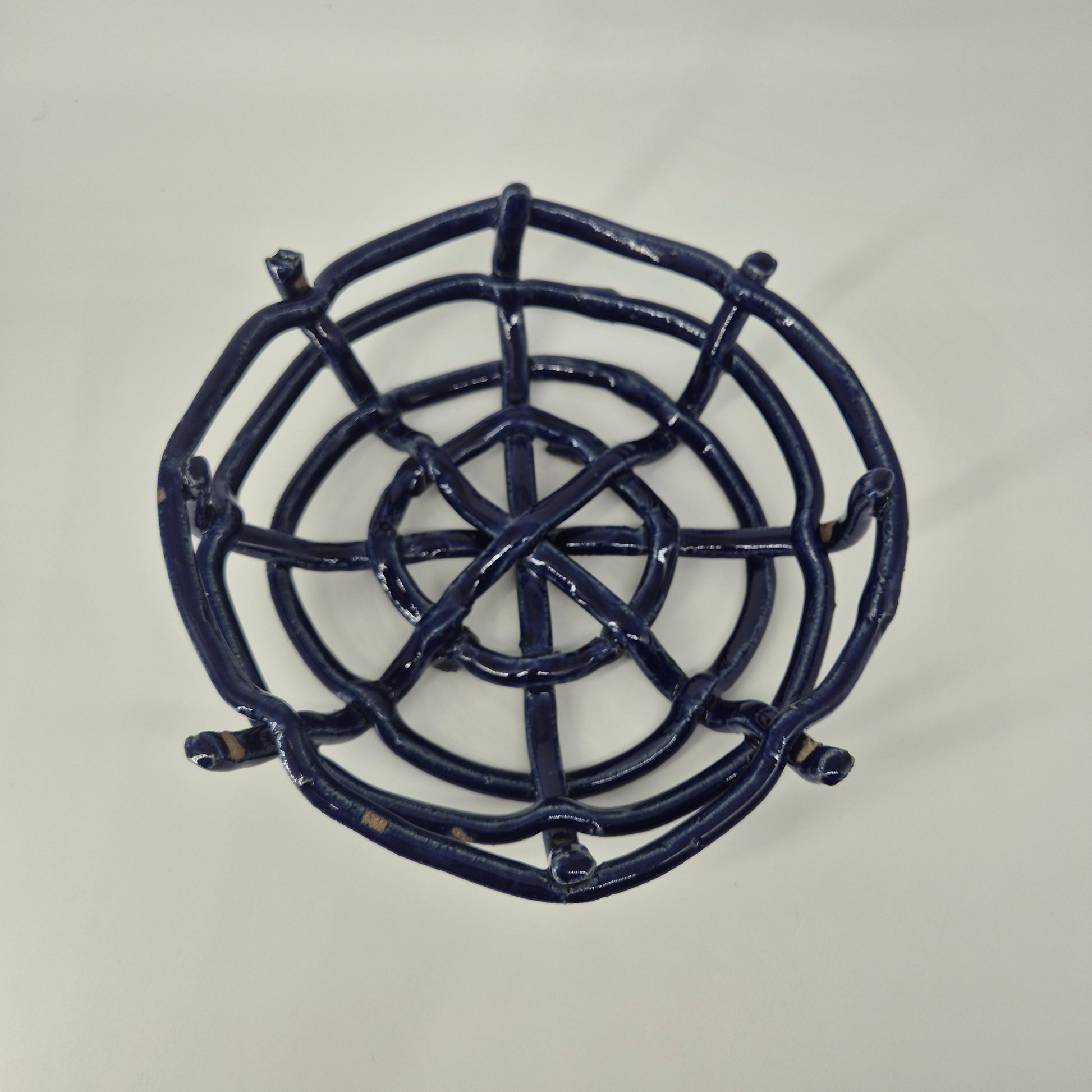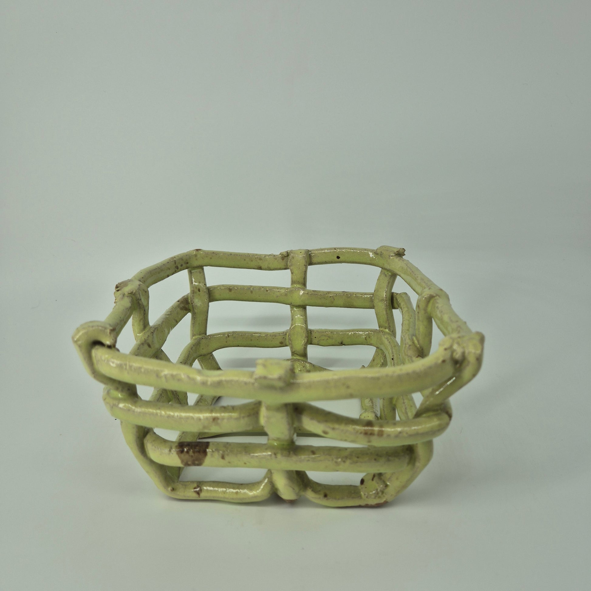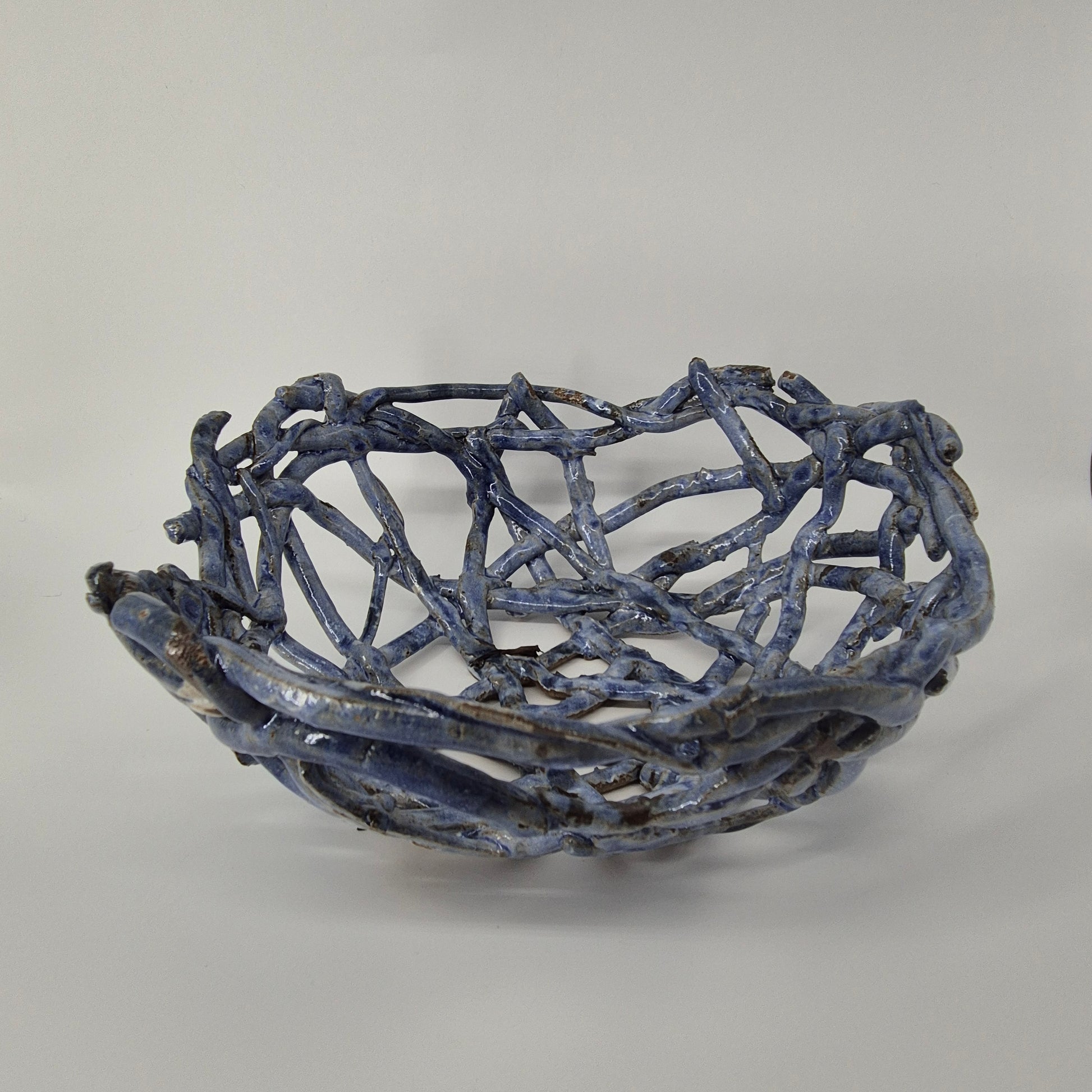 These fruit baskets are inspired by natural forms, including bird's nests and spider's webs. The open design allows for air to flow and keep fruit fresh for longer. Additionally, this design blends the colours of the ceramic with that of the fruit.
