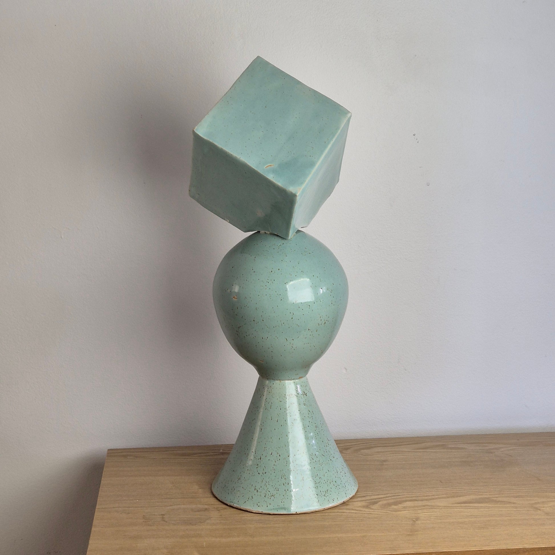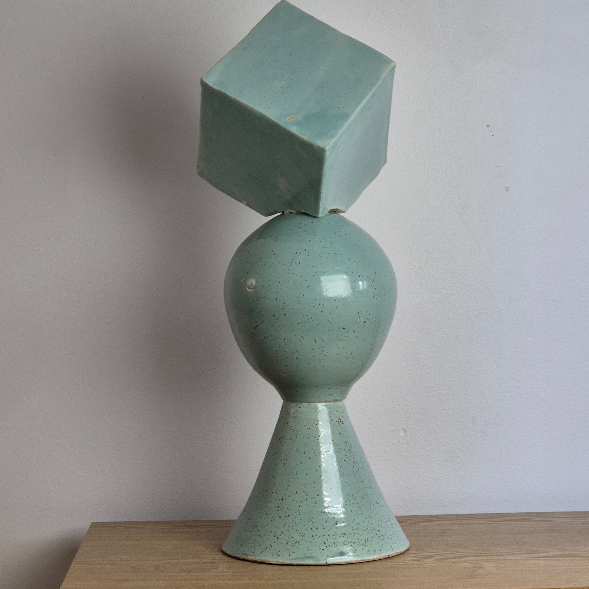 An exploration of geometric absurdism. After many iterations, this was the most satisfying stack. Occupying my mind and journals for months, doodled in the margins, thrown, reclaimed, and rethrown. This near-impossible structure is reinforced with an internal rod and adhesive.